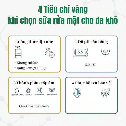 Tiêu chí vàng khi chọn sữa rửa mặt cho da khô