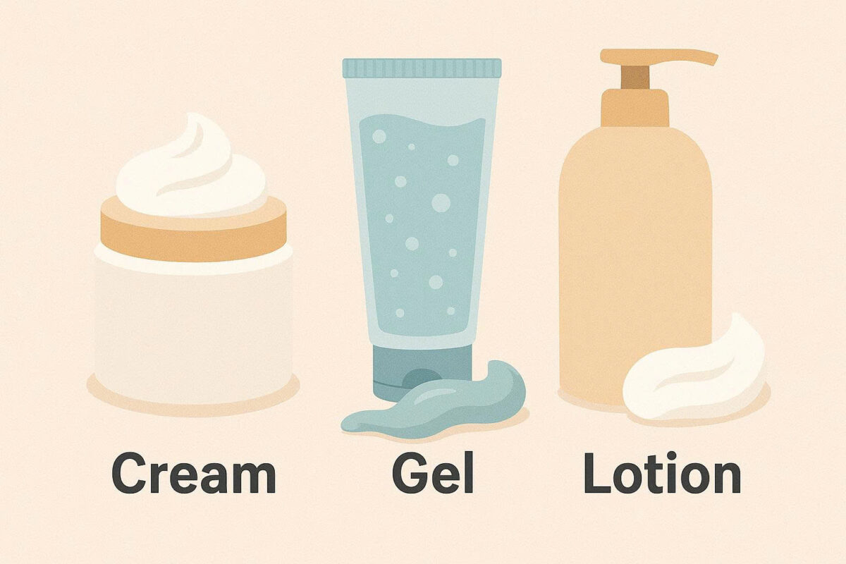 - Kết cấu: Hãy chọn loại kem dưỡng có kết cấu mỏng nhẹ. Dạng gel, lotion hoặc sữa là lựa chọn hoàn hảo. Chúng thấm nhanh, không gây cảm giác nặng mặt.