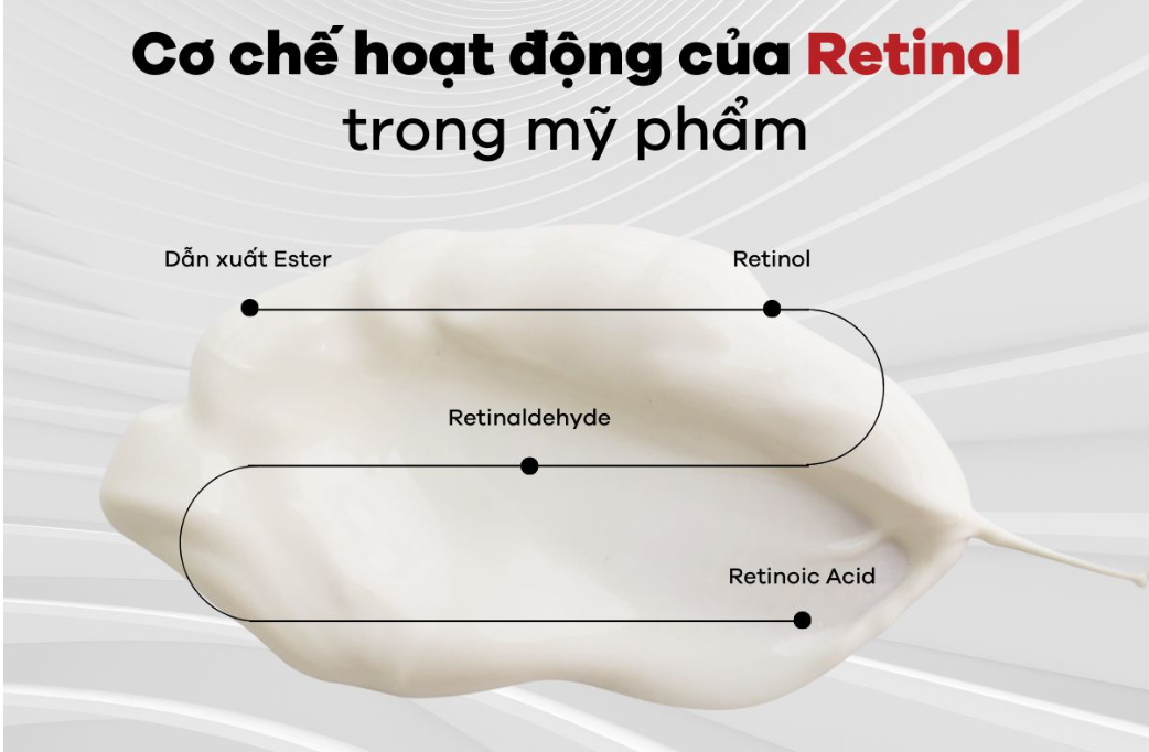 Retinol là một dẫn xuất của Vitamin A, thuộc nhóm Retinoids. Nó hoạt động bằng cách trung hòa các gốc tự do gây hại, đồng thời thẩm thấu sâu vào da để: