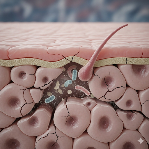 - Hàng rào bảo vệ da yếu → da dễ bị xâm nhập bởi bụi, vi khuẩn, hóa chất.