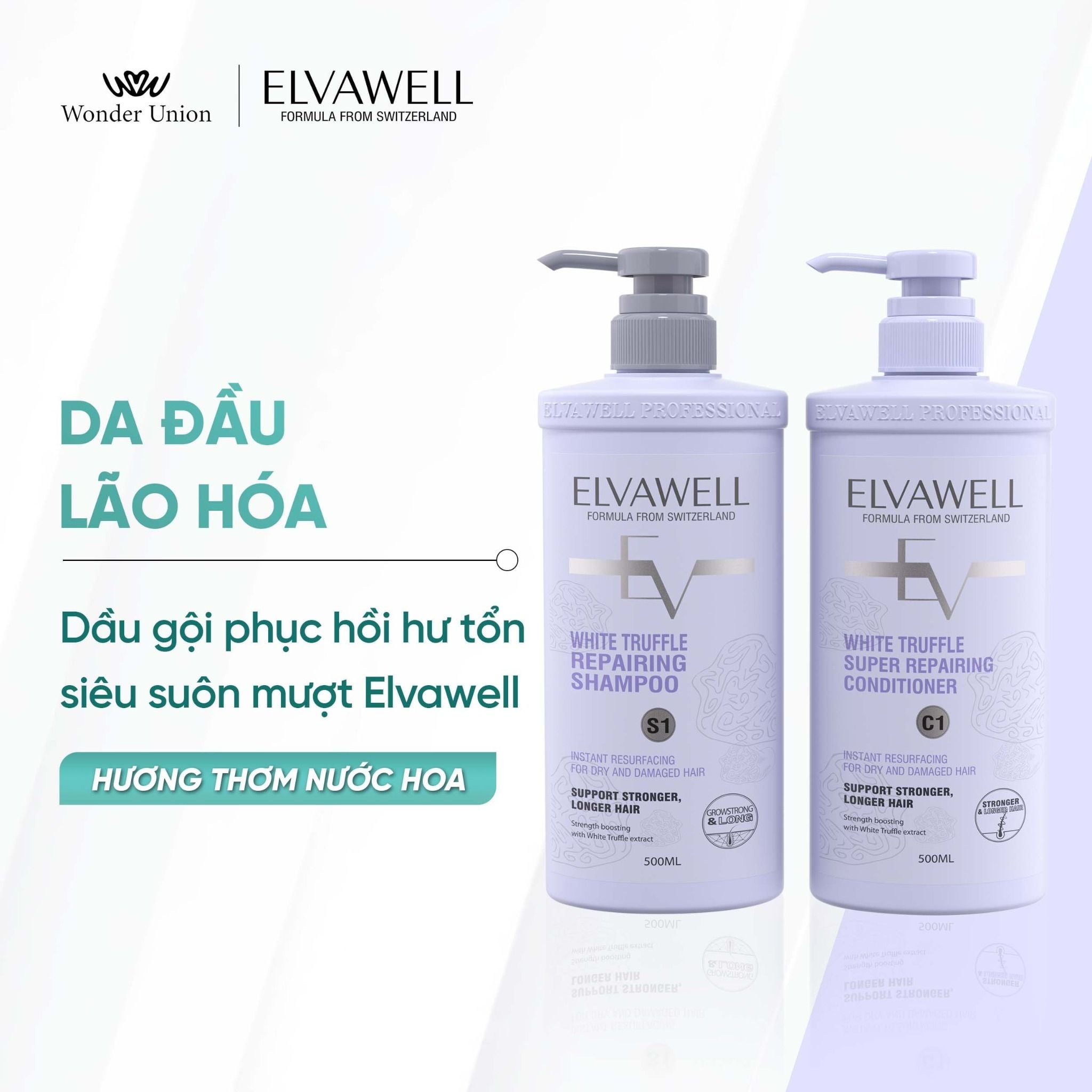 Dầu gội phục hồi hư tổn siêu suôn mượt Elvawell 500ml